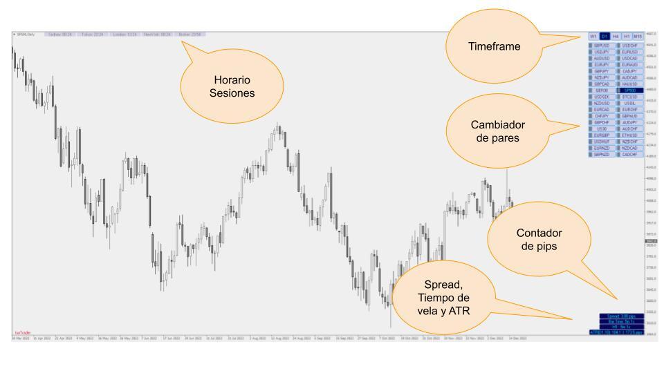 Esta es la herramienta y panel de control definitivo en forma de indicador para tú Metatarder 4. Dispone de todos los parámetros a tú elección y te proporciona la información que necesitas para hacer de tu operativa y trading más fácil. Esto es lo que te ofrece este panel de control, con todo totalmente personalizable en posición, tamaño y colores: