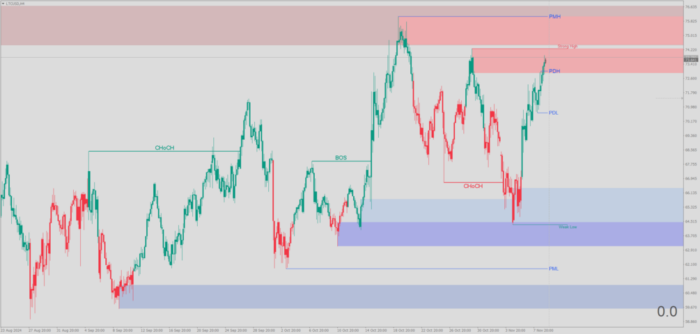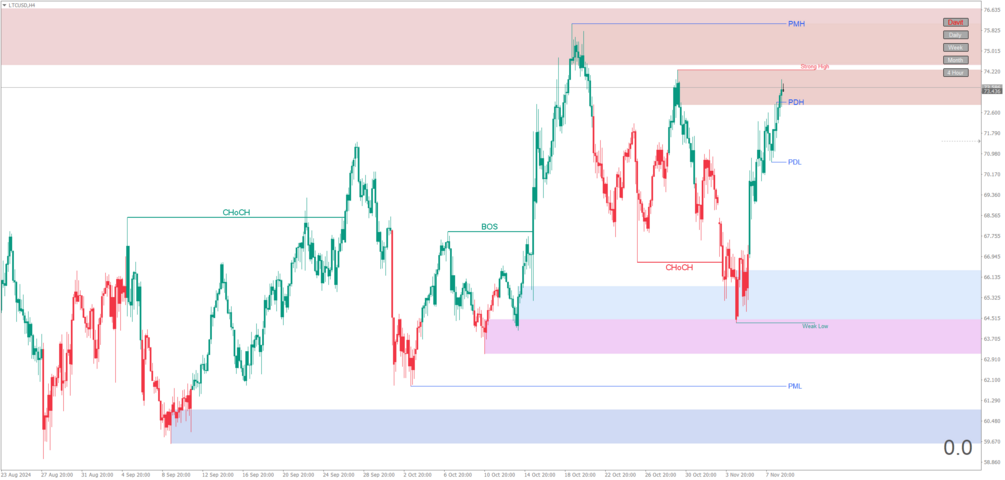 - Las zonas de Premium (primas) y Discount (descuentos) te permiten visualizar áreas donde el precio podría estar sobrecomprado o sobrevendido según la estructura de mercado. Estas zonas ayudan a evaluar si es un buen momento para entrar en una posición de compra o venta, respectivamente.